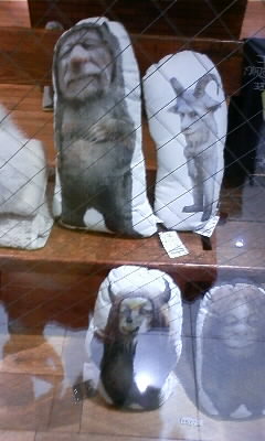 ショップのウィンドウにもかいじゅうたちのクッションが飾られていました。