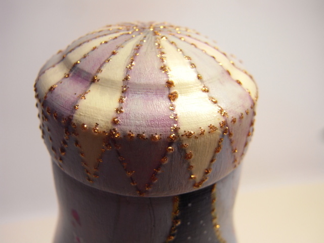 何度か重ね塗りをし、ゴールドラメで盛り上げ装飾などもしてます。