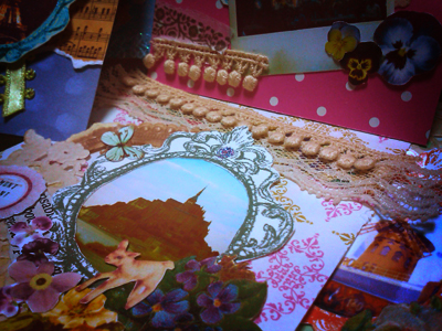 表面がキラキラした紙やトレーシーングペーパーなど挟んでいます。