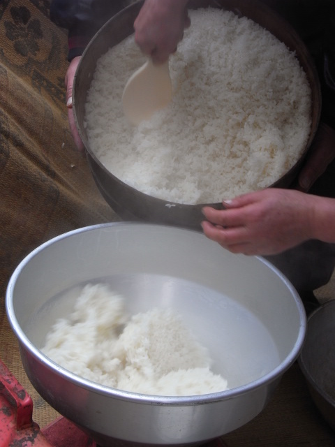 ふっくら仕上がったもち米を、もう30年は使っている古いマシンに投入(笑)
