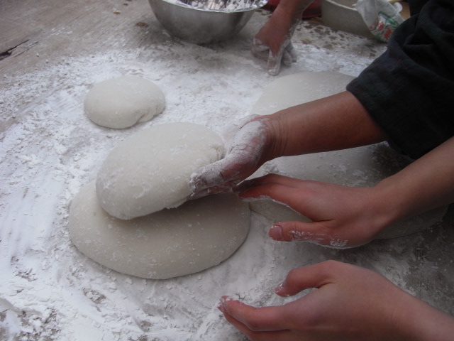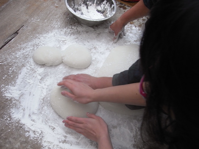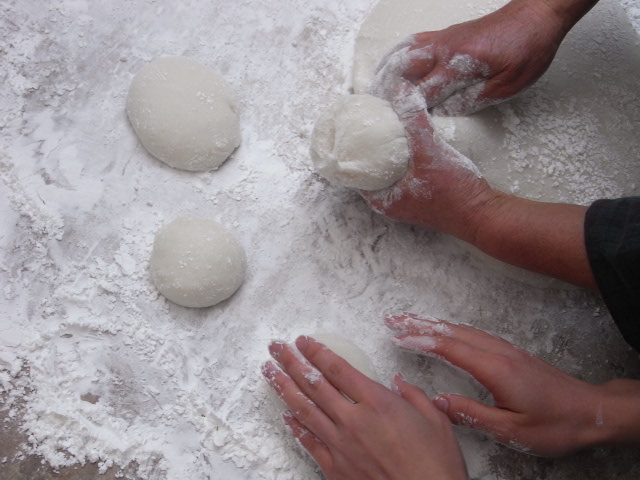 鏡餅など作ったり、お敷で伸ばしたりして完成。
