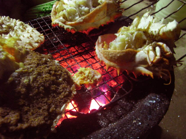 今日は蟹を七輪で炭火焼にしていただきました!!