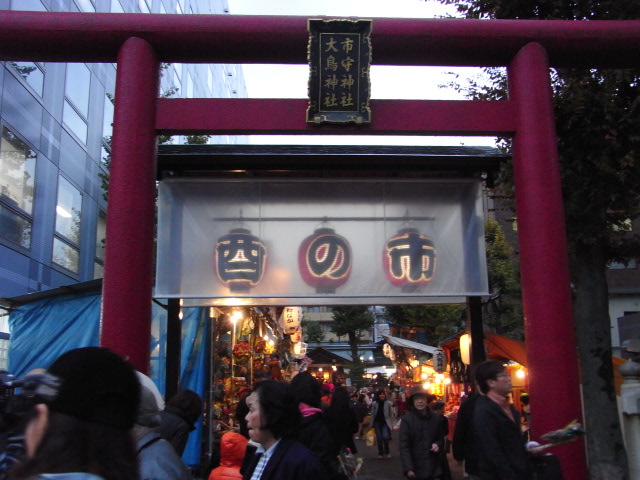 24日、八王子に用事があったついで、酉の市(とりのいち)をのぞいてきました。