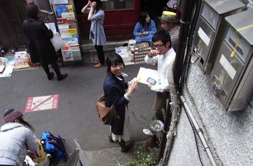 カフェ百音やえほんやるすばんばんするがいしゃの前は大賑わい。