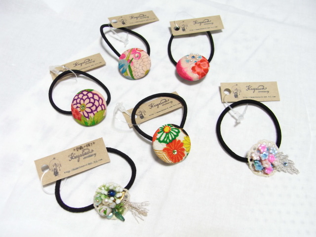 その隣のお友だちのお店では、お母様お手製のシュシュを購入。光沢のあるピンクがかわいくてお気に入り。