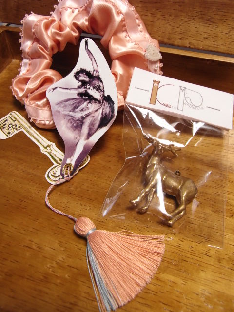 それから手前はともみちゃんの作ったタッセル。バレリーナと鍵モチーフ、そしてタッセルの色の組み合わせがほんとに素敵…。ともみちゃんの作るものは、大人の女性の雰囲気漂う上品で、素晴らく愛らしいものばかりです。うっとりしてしまいますねー。