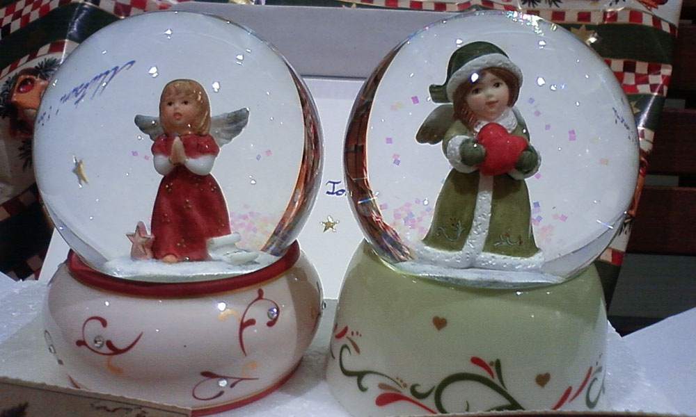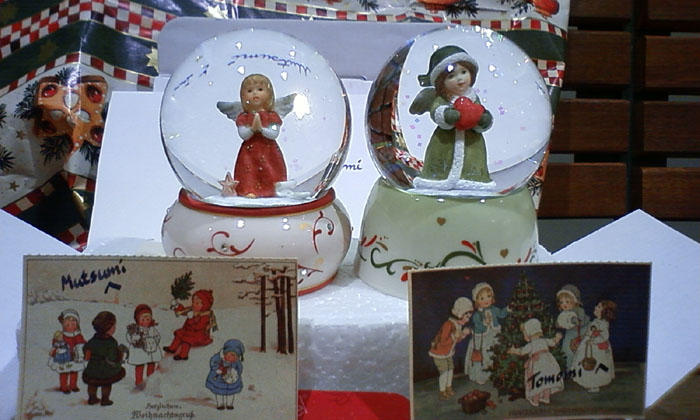 これは去年のクリスマス頃、ドイツ人の友達Frankが、ドイツからわざわざ、スノードームが好きなともみちゃんと私に宛てて送ってくれたものでした。