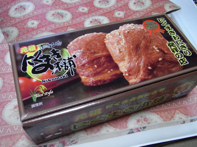 肉巻きおにぎりの強烈インパクトな箱…(笑)、