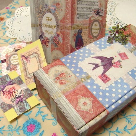 ビジュアル集からヴィンテ-ジの布柄をカラーコピーして貼りはり。