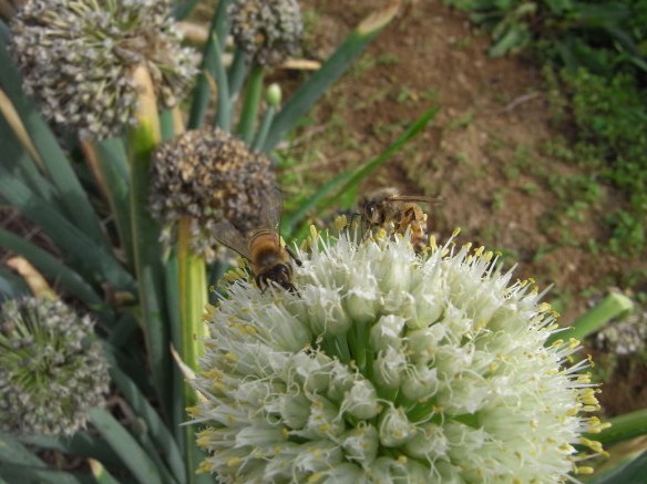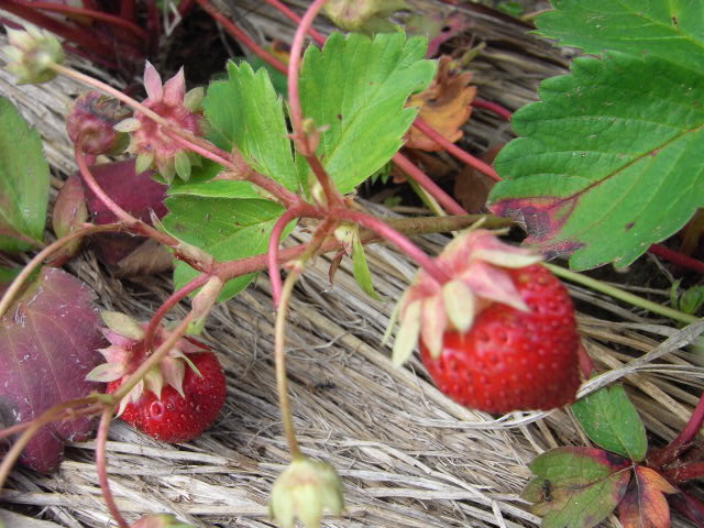 ハチとネギのあたまとかわいいイチゴ。
