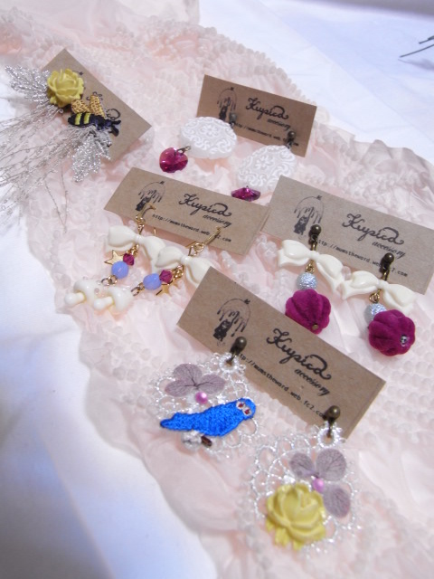 それから手前はともみちゃんの作ったタッセル。バレリーナと鍵モチーフ、そしてタッセルの色の組み合わせがほんとに素敵…。ともみちゃんの作るものは、大人の女性の雰囲気漂う上品で、素晴らく愛らしいものばかりです。うっとりしてしまいますねー。
